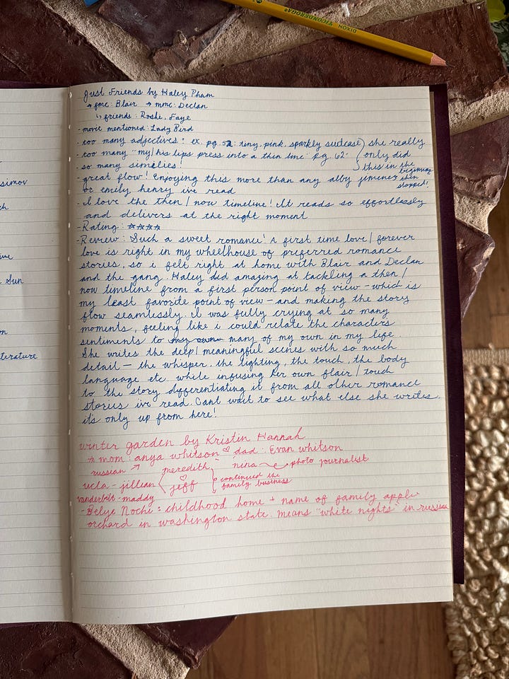 All of this to say, I think I found a system that works for me and what I need regarding my most beloved hobby. I have even resorted to writing reviews by hand and writing only in cursive! This is all absolutely riveting to me, haha.